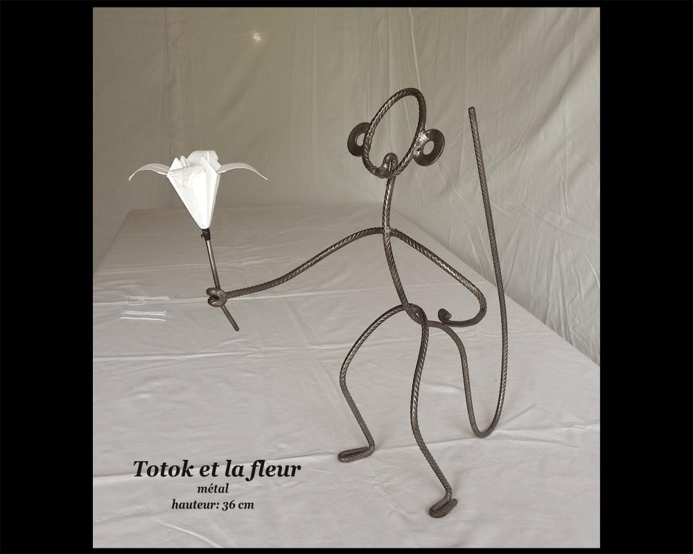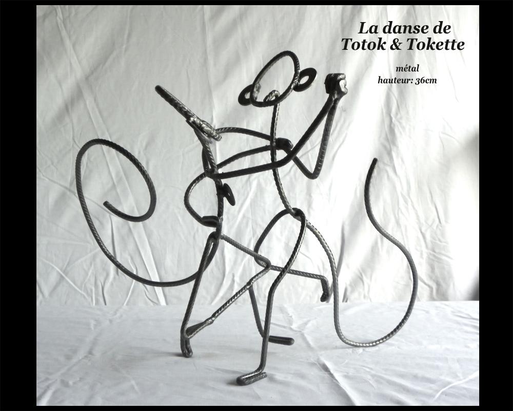 Sculpture réalisée à partir de pièces métalliques de récupération (clefs anciennes, fers à cheval, tire-bouchons, fourchettes, cuillères, engrenages de vélo…)