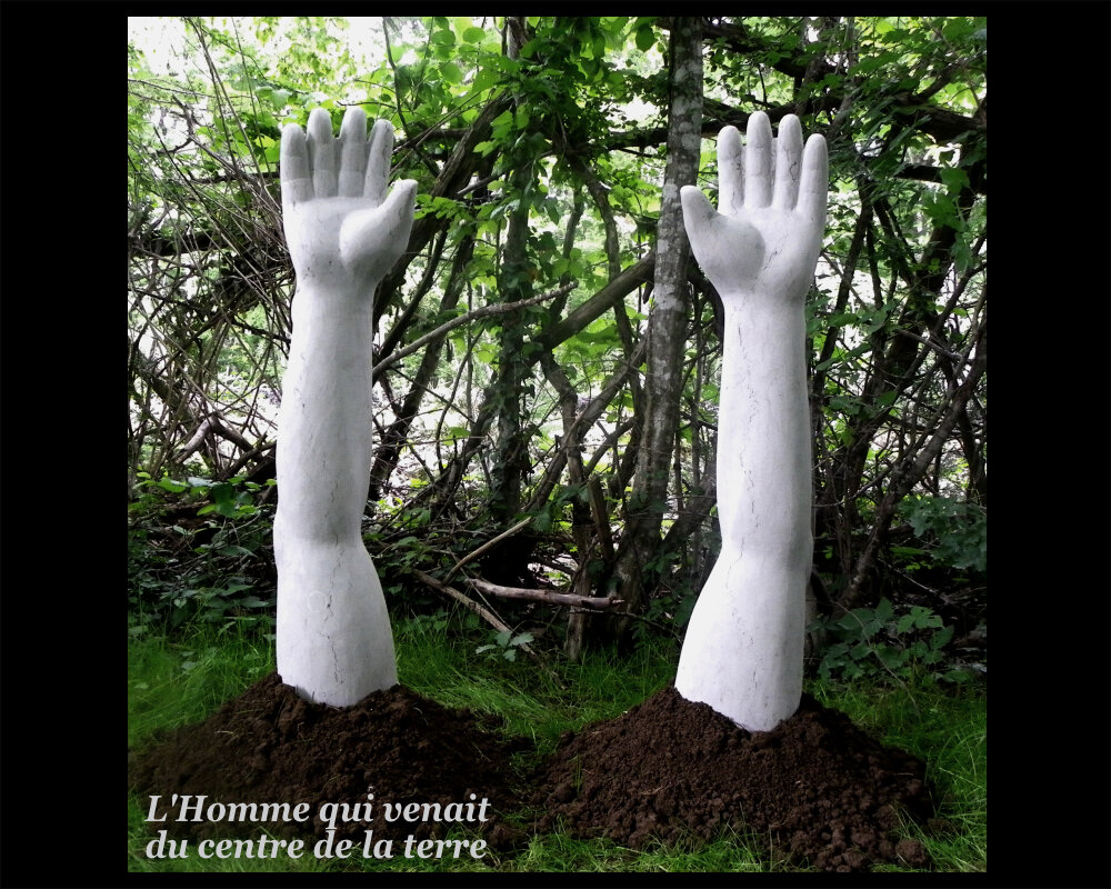 Cette œuvre est composées de deux matières : de la pierre et du texte. Les 2 bras sculptés ne peuvent être dissociés de la nouvelle écrite et observés sans la lecture de de cette moitié, sans quoi la sculpture perd tout son sens. Les deux ensembles réunis concrétisent le projet dans son intégralité.